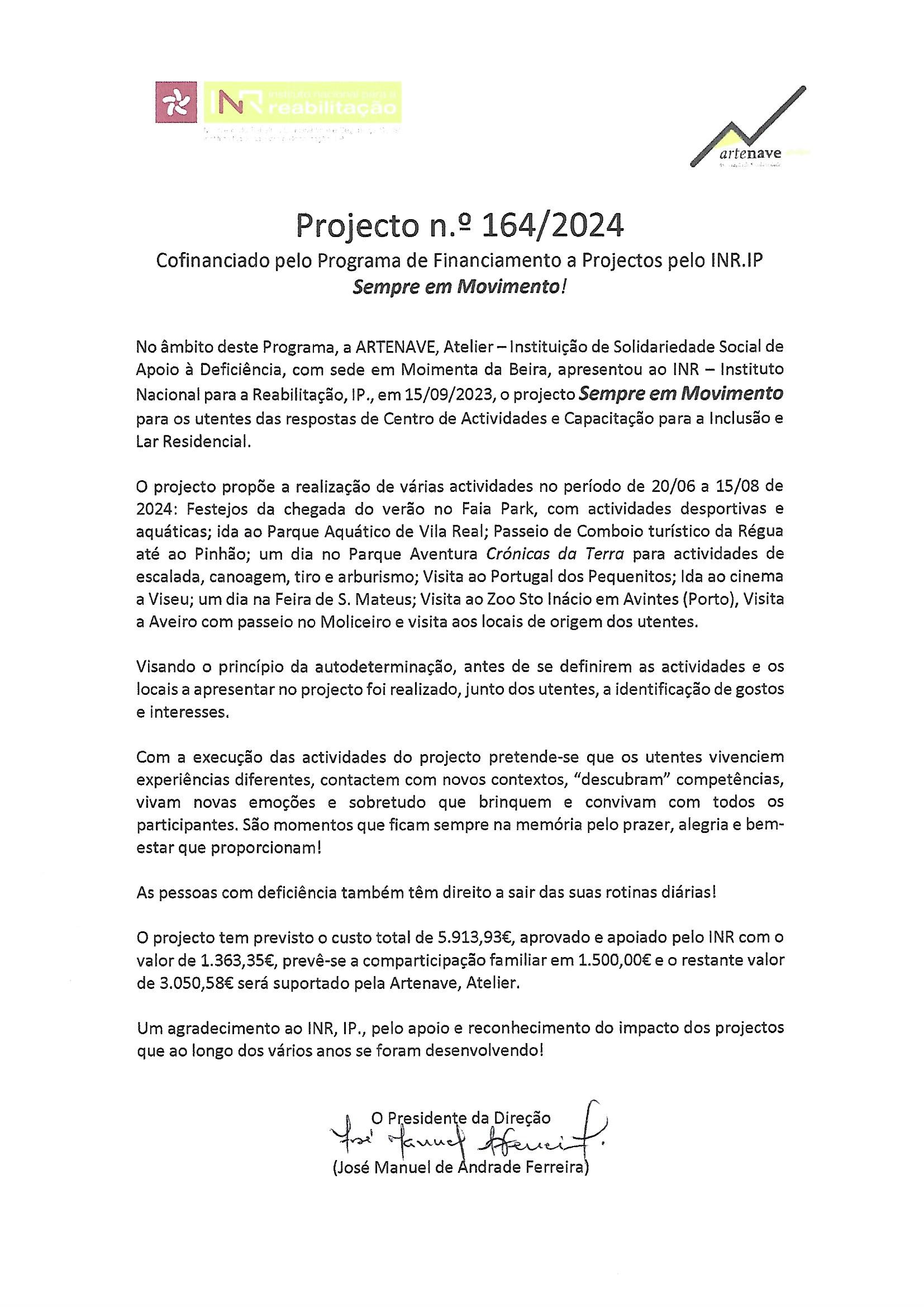 Projecto n.º 164/2024 INR - Sempre em Movimento